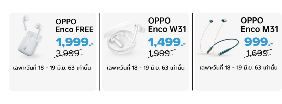- OPPO Enco W31 พิเศษ 1,499 บาท จากปกติ 1,999 บาท