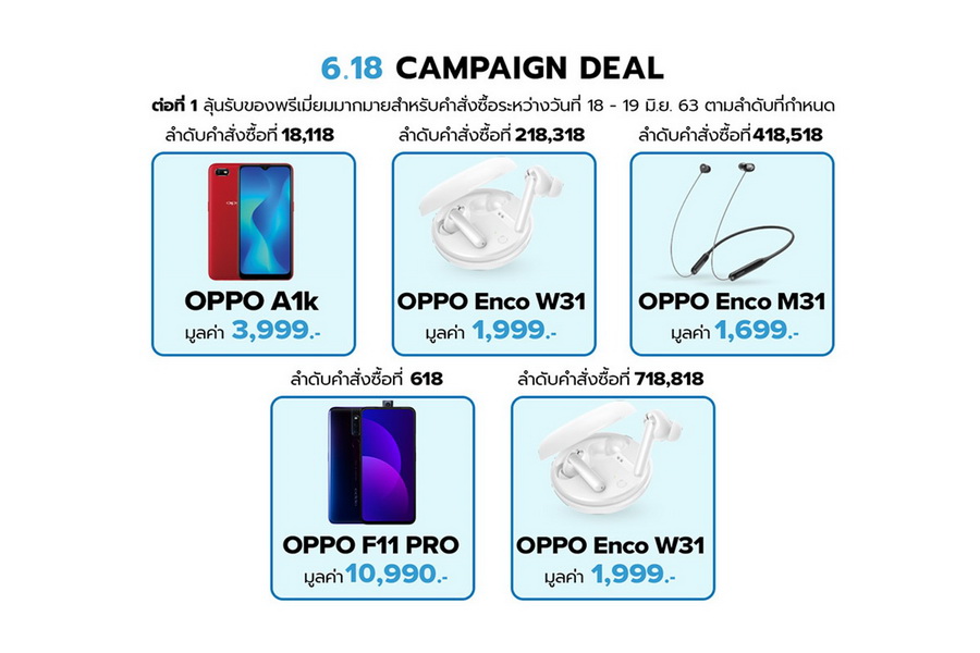 - ออเดอร์ลำดับที่ 418 และ 518 รับฟรี OPPO Enco M31