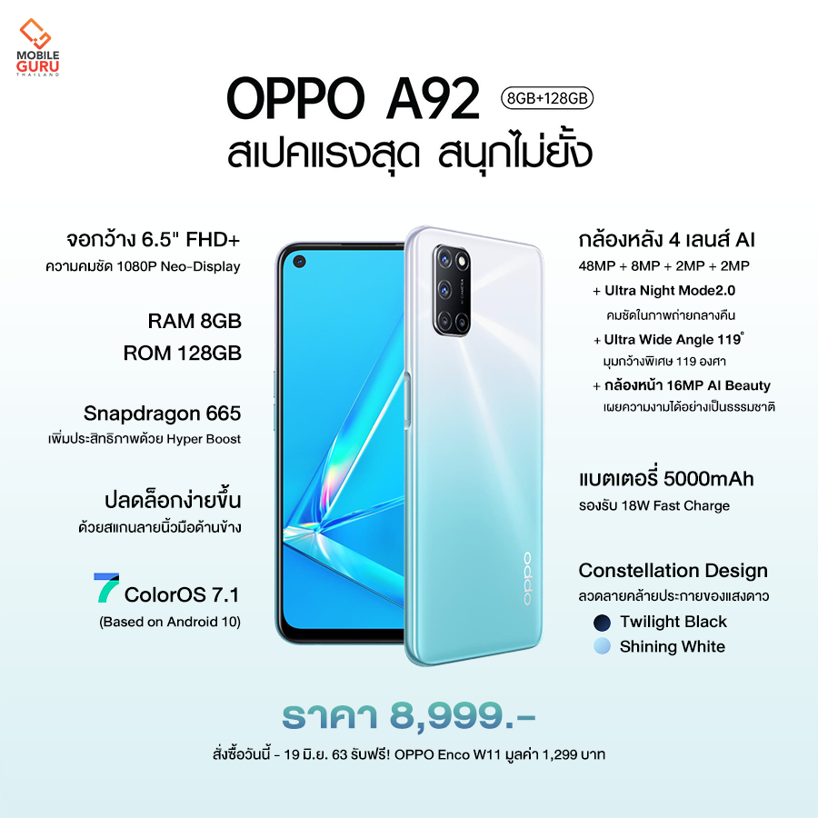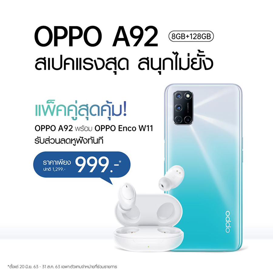 สรุปทุกรายละเอียดของ OPPO A92 และหูฟังไร้สายอัจฉริยะ OPPO Enco W11 พร้อมโปรโมชั่นสุดคุ้มที่ไม่ควรพลาด!