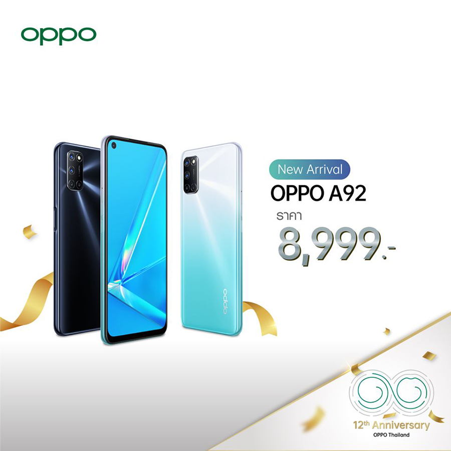 OPPO A92 สเปคแรงสุด สนุกไม่ยั้ง สมาร์ทโฟนมาแรงรุ่นใหม่ล่าสุด ครบจบในเครื่องเดียว ราคา 8,999 บาท
