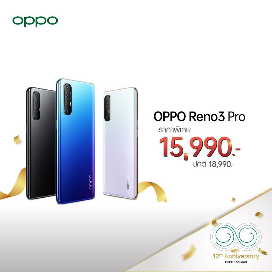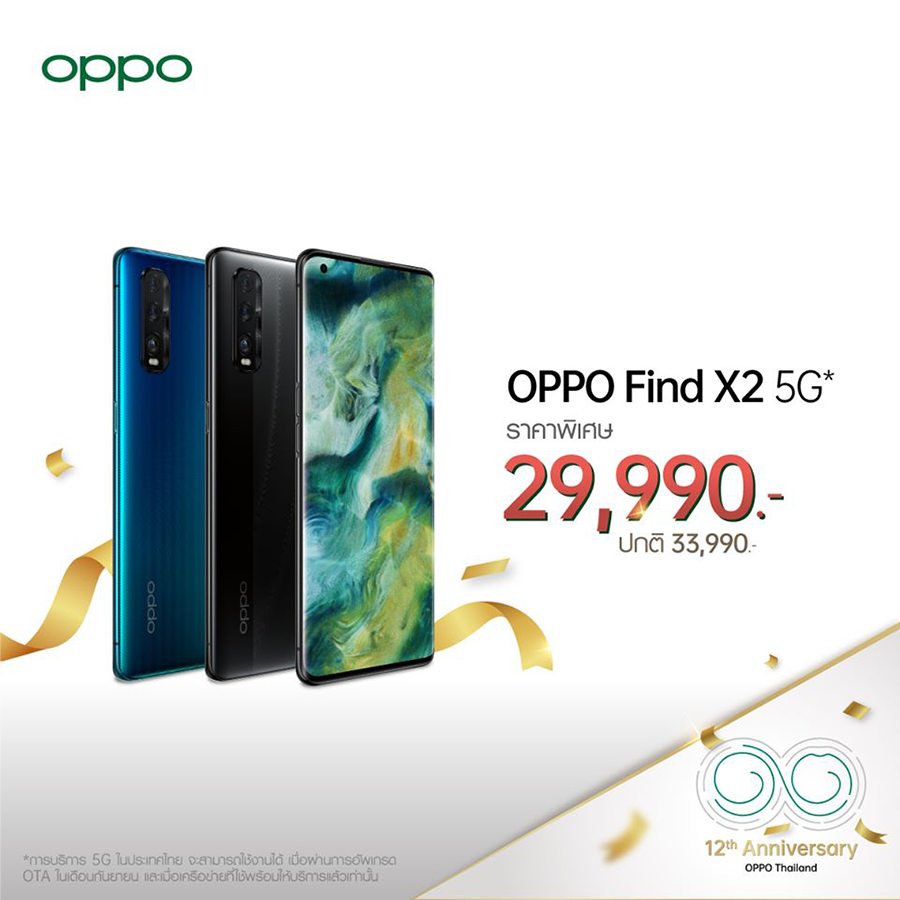 OPPO ครบรอบ 12 ปี ปรับลดราคา OPPO Find X2 5G และ OPPO Reno3 Pro สุดพิเศษ!