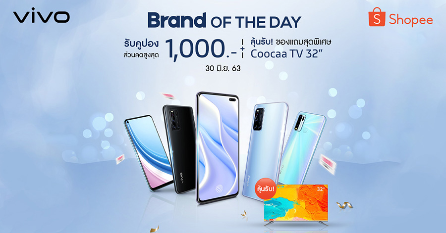 ใกล้หมดครึ่งปีแรกกันแล้ว มาร่วมฉลอง Mid Year 2020 ไปกับโปรโมชันมือถือสุดคุ้ม Vivo BRAND DAY 6.30! สิ้นเดือนแบบไม่ต้องสิ้นใจ เพราะ Vivo ขนขบวนสมาร์ทโฟนมาลดแบบจุใจ ลดสูงสุดกว่า 25% พร้อมของแถม ของรางวัล และ Voucher อีกเพียบ!