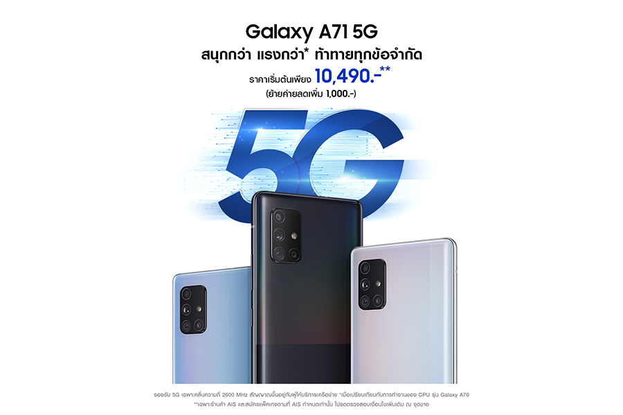 Samsung Galaxy A71 5G มือถือ 5G ในราคาเข้าถึงได้ เริ่มต้นเพียง 10,490.- ตอบโจทย์สายบันเทิง-เกมเมอร์