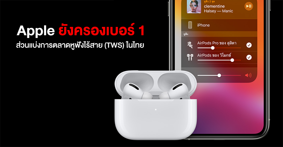 Apple ยังครองเบอร์ 1 ส่วนแบ่งการตลาดหูฟังไร้สาย (TWS) ในไทย
