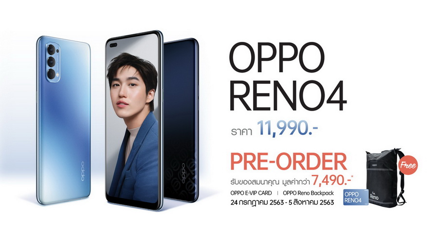 OPPO Reno4 พร้อมวางจำหน่าย 6 สิงหาคมนี้ ในราคา 11,990 บาท ซื้อติดแพ็กเกจเริ่มต้นเพียง 4,990 บาท