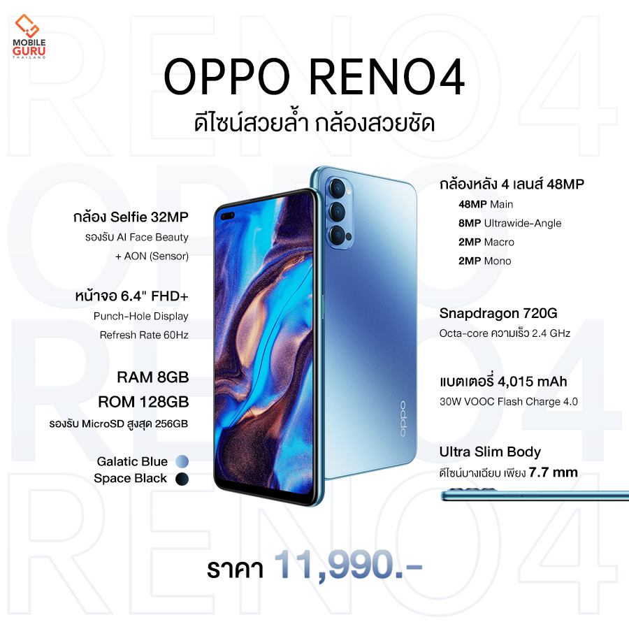เรียกได้ว่า OPPO Reno4 มาแรงแบบฉุดไม่อยู่เลยจริงๆ และหากใครที่อยากเป็นเจ้าของ OPPO Reno4 สมาร์ทโฟนที่กล้องสวย ดีไซน์หรู สเปคจัดเต็มม กับราคาสุดคุ้มเพียง 11,990 บาท ก็สามารถเป็นเจ้าของได้แล้วที่ OPPO Brand Shop และ ตัวแทนจำหน่ายทั่วประเทศ