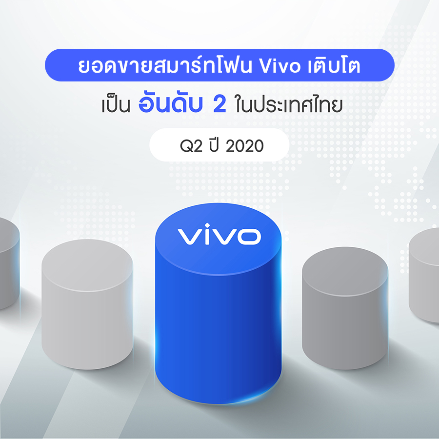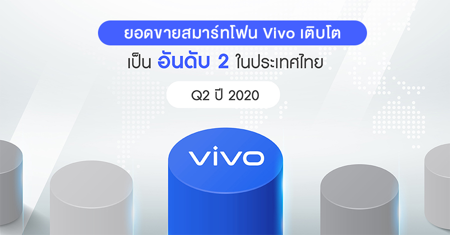 Vivo ครองยอดขายสมาร์ทโฟนอันดับ 2 ในประเทศไทย ช่วงไตรมาสที่ 2 ปี 2563 โดยมีอัตราการเติบโตถึง 26%