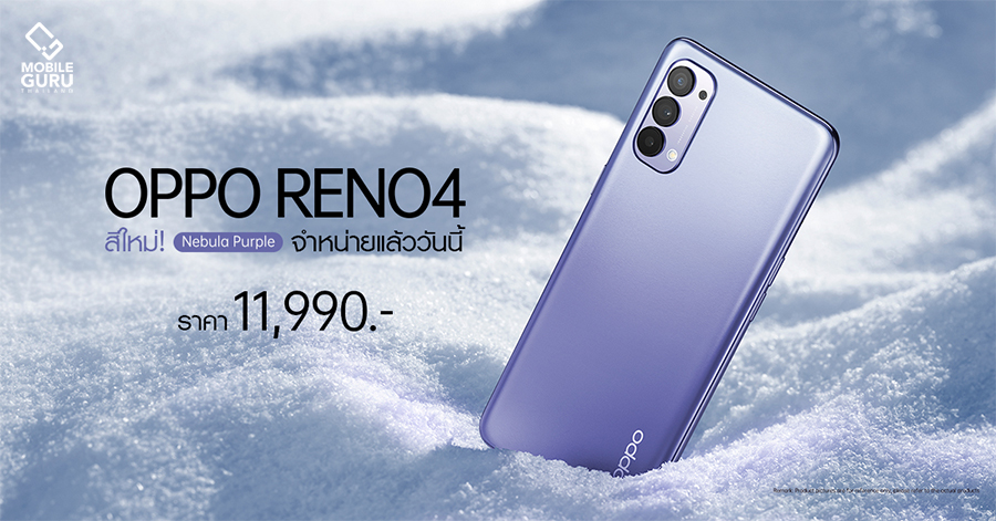 OPPO Reno4 สีใหม่ Nebula Purple สวย โดดเด่น สะกดทุกสายตา พร้อมให้คุณเป็นเจ้าของแล้วเพียง 11,990 บาท