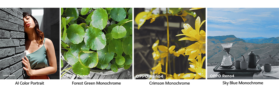 นอกจากความสวยงามของสีสันแล้ว OPPO Reno4 สี Nebula Purple ยังมาพร้อมกับกล้องหน้าความละเอียด 32MP และกล้องหลัง 4 ตัว คมชัดสูงสุด 48MP พร้อม AI Color Portrait ที่เปลี่ยนสีของพื้นหลังให้เป็นสีขาว-ดำ ทั้งกล้องหน้า และกล้องหลัง รองรับทั้งภาพนิ่งและวิดีโอ นอกจากนี้ยังสามารถถ่ายวีดีโอแบบ Monochrome Video ได้ด้วย โดยเป็นการดูดสี 3 สีคือ แดง ฟ้า และเขียว ช่วยให้คุณสร้างสรรค์วิดีโอได้หลากหลายสไตล์มากยิ่งขึ้น พร้อมด้วยหน่วยประมวลผล Qualcomm Snapdragon 720G ที่ช่วยให้การใช้งานไหลลื่นไม่มีมีสะดุด เล่นได้เพลินๆ กับแบตเตอรี่ขนาด 4,015 mAh และระบบชาร์จไว 30W VOOC Flash Charge 4.0 ชาร์จ 20 นาทีได้แบตเตอร์รี่ 50% และสามารถชาร์จเต็มได้ในเวลาเพียง 57 นาที