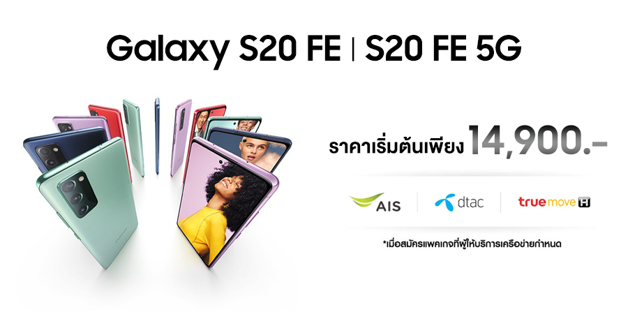- Samsung Galaxy S20FE LTE รุ่น 8 + 128 ราคา 20,900 บาท