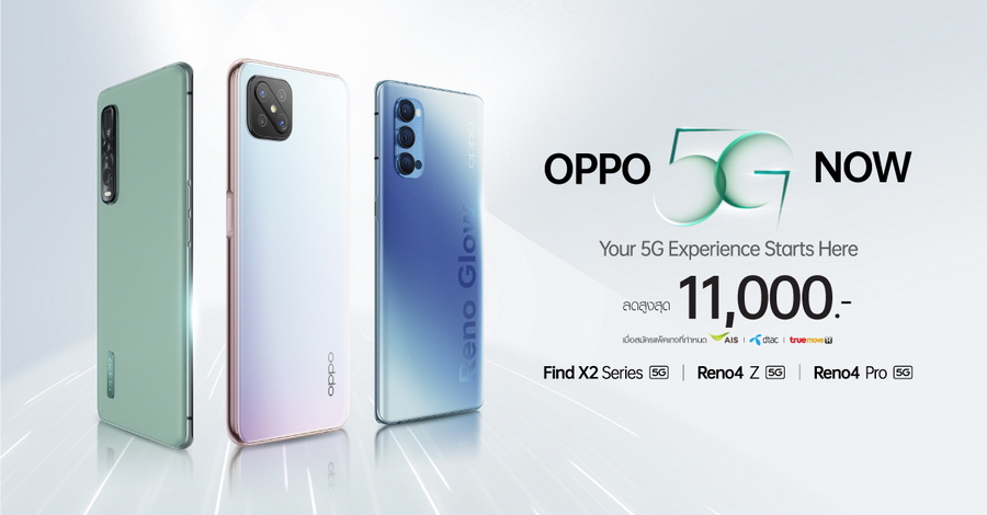 ซื้อสมาร์ทโฟน OPPO 5G กับ AIS, TrueMove H และ dtac ราคาเริ่มต้นเพียง 5,990 บาท