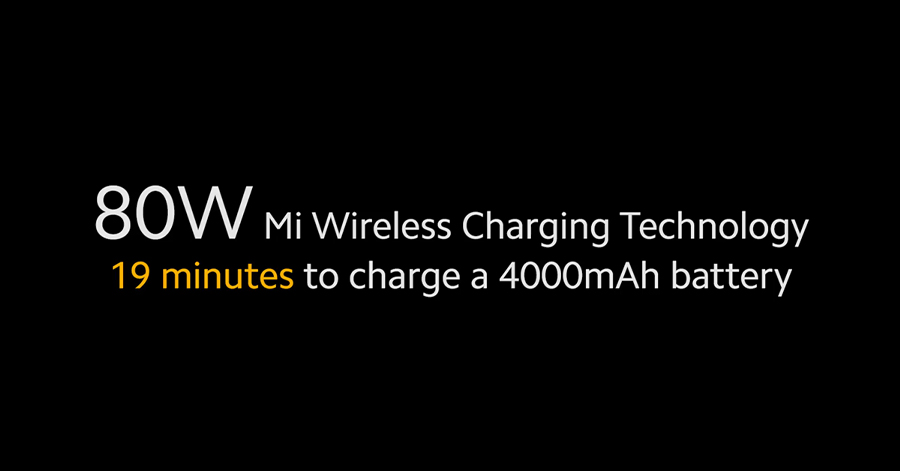 เทคโนโลยีการชาร์จแบบไร้สาย 80W สามารถชาร์จแบตเตอรี่ขนาด 4,000 mAh ได้ถึง 10% ใน 1 นาที, 50% ใน 8 นาที และ 100% ในเวลาเพียง 19 นาที หากจะเปรียบเทียบกับเทคโนโลยีการชาร์จของเสียวหมี่แบบไร้สาย 30W ในปี 2019 ที่สามารถชาร์จแบตเตอรี่ในขนาดใกล้เคียงกันได้ 50% ในเวลาประมาณ 25 นาทีและ 100% ในเวลา 69 นาที