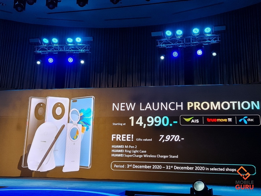 พิเศษสุดสำหรับผู้ที่ซื้อระหว่างวันที่ 3 - 31 ธันวาคม 2563 ผ่านทางหน้าร้าน HUAWEI Experience Store ทุกสาขา และเว็บไซต์ HUAWEI Online Store โฉมใหม่ รวมถึงร้านค้าและตัวแทนจำหน่ายที่ร่วมรายการทั่วประเทศ รับฟรีทันทีของสมนาคุณมูลค่ารวม 7,970 บาท ประกอบด้วย