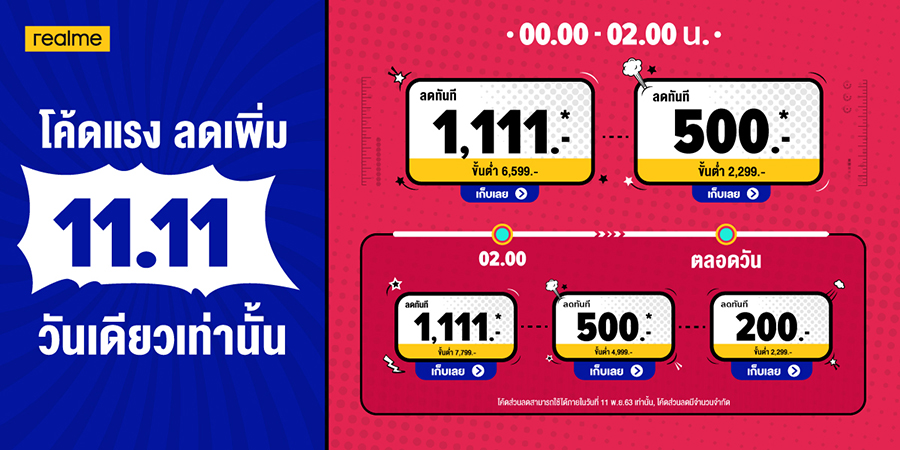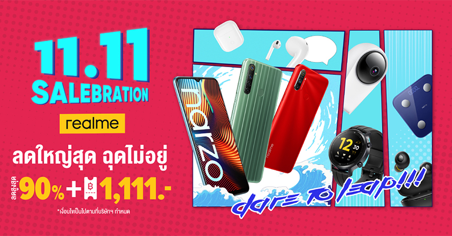 ฉลองกับ realme ใน 11.11 SALEBRATION ลดใหญ่สุด ฉุดไม่อยู่ ส่วนลดสูงสุด 90% พร้อมโค้ดลดมากกว่า 1,111.-