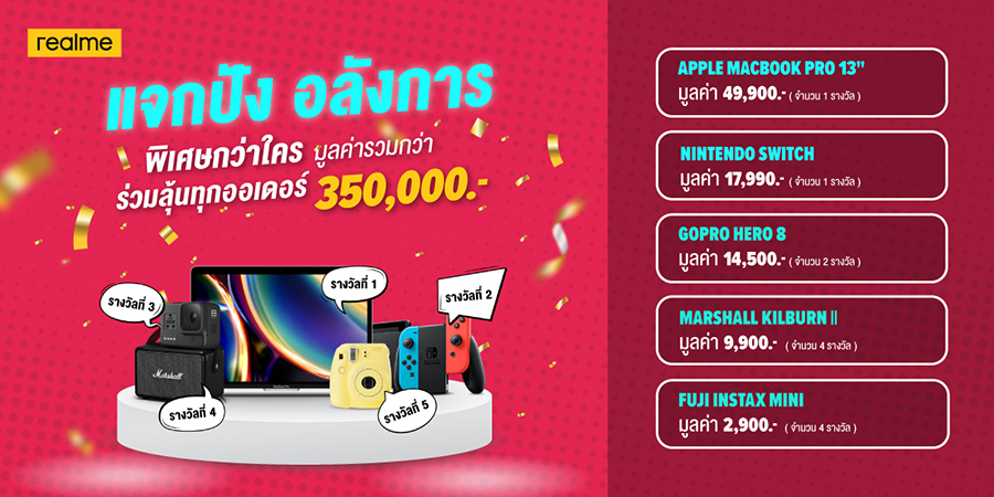 - ทุกคำสั่งซื้อที่มีสถานะสำเร็จ จากร้าน realme official store ผ่านทาง Shopee และ Lazada เท่านั้น