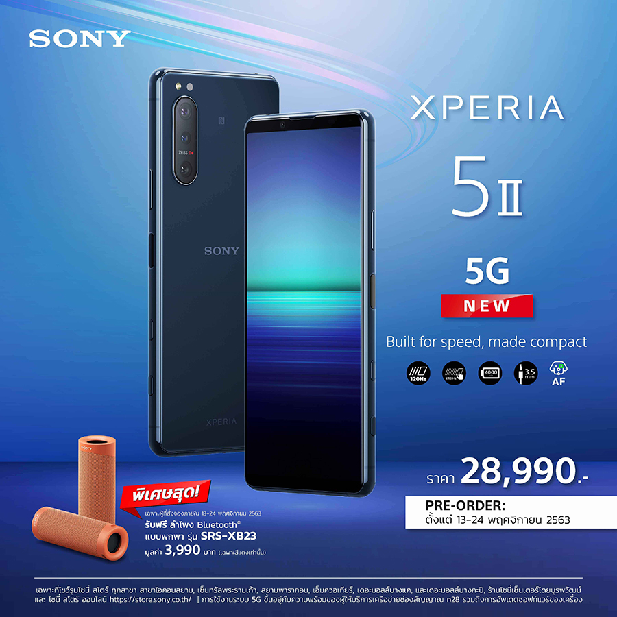 โซนี่ไทย เปิดตัว Xperia 5 II สมาร์ทโฟนอัดแน่นเทคโนโลยีสุดล้ำ รองรับ 5G พร้อมเปิดจอง 13 พ.ย. นี้