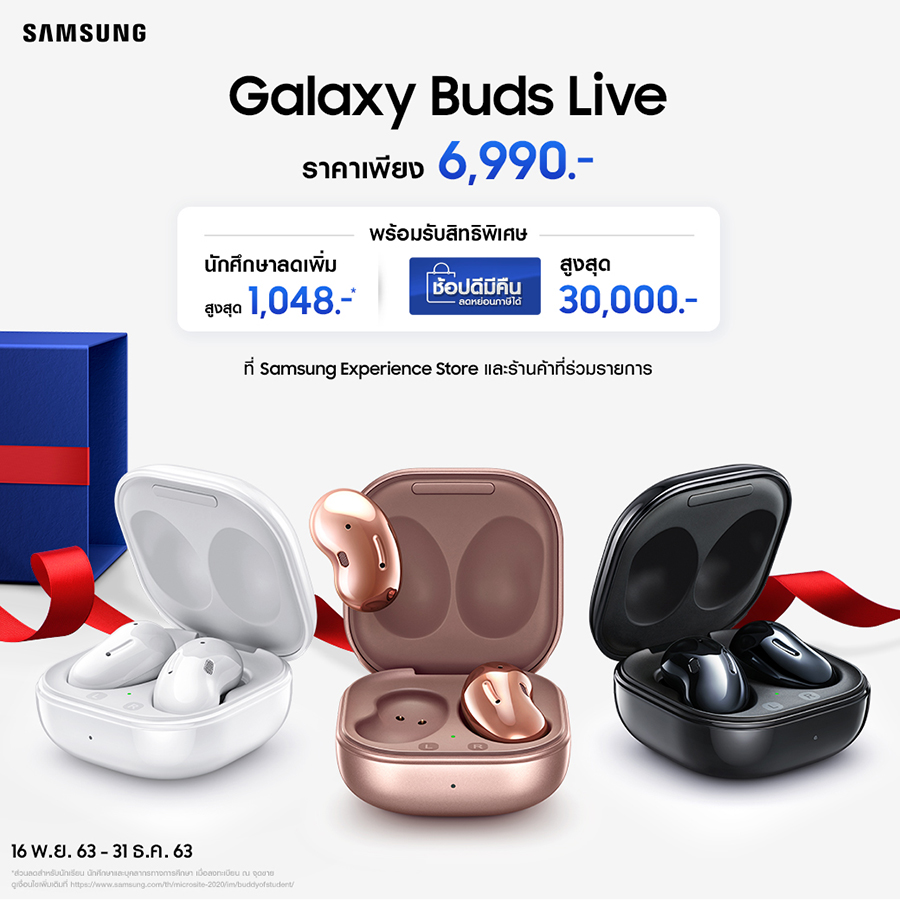 - นักเรียน นักศึกษา บุคลากรทางการศึกษา รับส่วนลดเพิ่ม 15% เฉพาะ Samsung Online Store และ Samsung Experience Store
