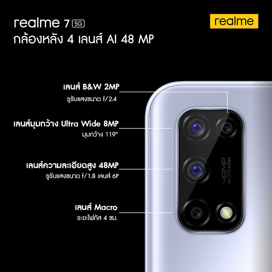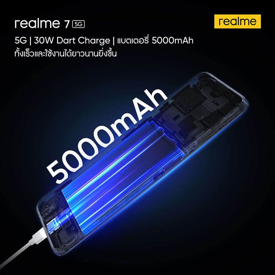 realme 7 5G สมาร์ทโฟน 5G พร้อมชาร์จเร็ว 30W Dart Charge หน้าจอลื่น 120Hz และกล้องหลัง 48MP ในราคา 9,999 บาท