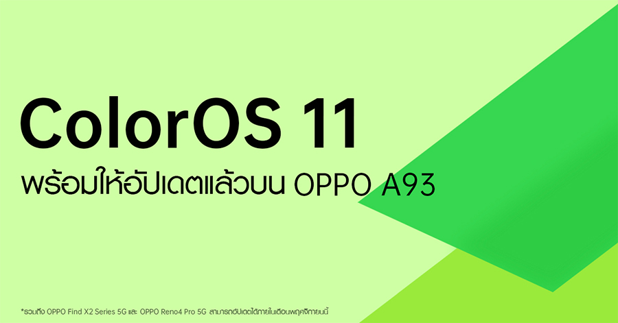 OPPO ประกาศใช้งานระบบปฏิบัติการ ColorOS 11 Official Version บน OPPO A93 ในประเทศไทย
