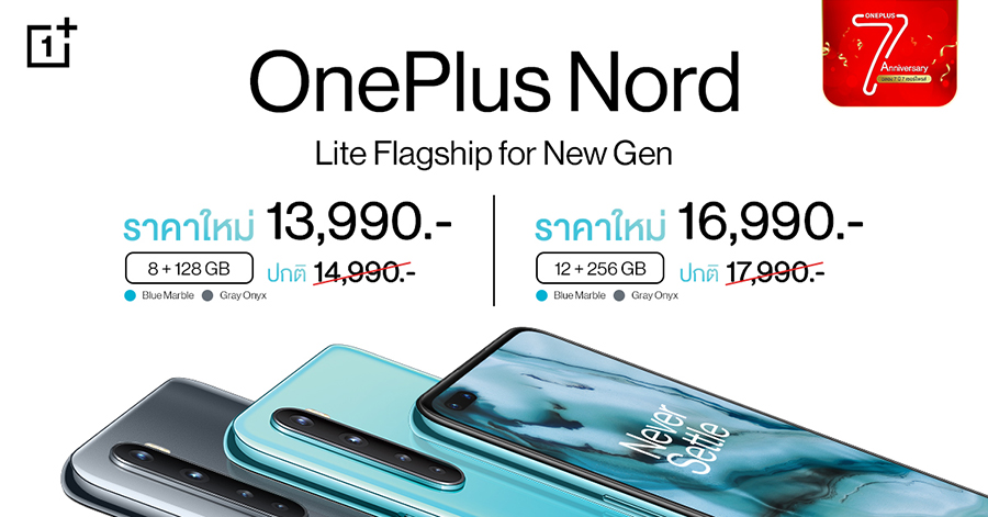 OnePlus ฉลองครบรอบ 7 ปี เซอร์ไพรส์ที่ 4 ปรับราคาใหม่ OnePlus Nord เริ่มต้นเพียง 13,990 บาท