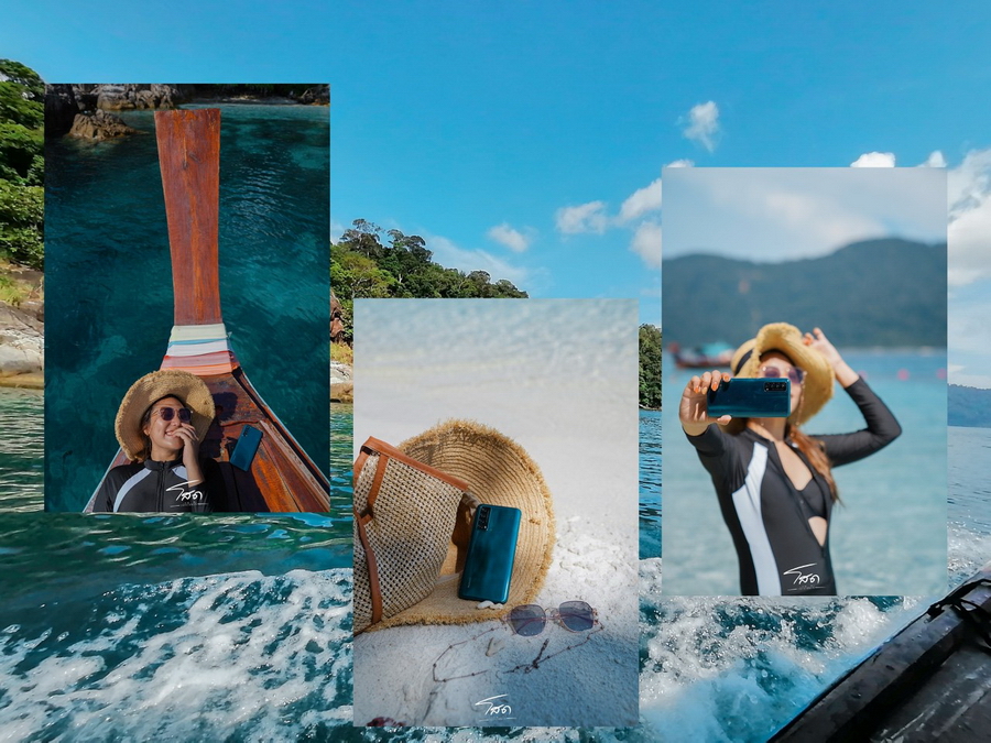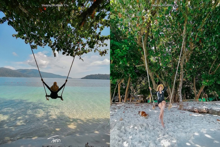 HUAWEI Y7a ถ่ายวิวทะเลสวยๆ ด้วยเลนส์อัลตร้าไวด์ 8MP เก็บมุมมองกว้างได้ถึง 120 องศา เก็บภาพวิวทิวทัศน์ได้ออกมาชัด สวยงาม ด้วยกล้องหลักความละเอียด 48MP ภาพแรกเห็นทั้งท้องฟ้า น้ำทะเล และหาดทราย พร้อมคนที่กำลังเล่นชิงช้า ในขณะที่รูปที่สองก็สามารถเก็บแมกไม้ริมทะเลที่ตัดกับผืนทราย