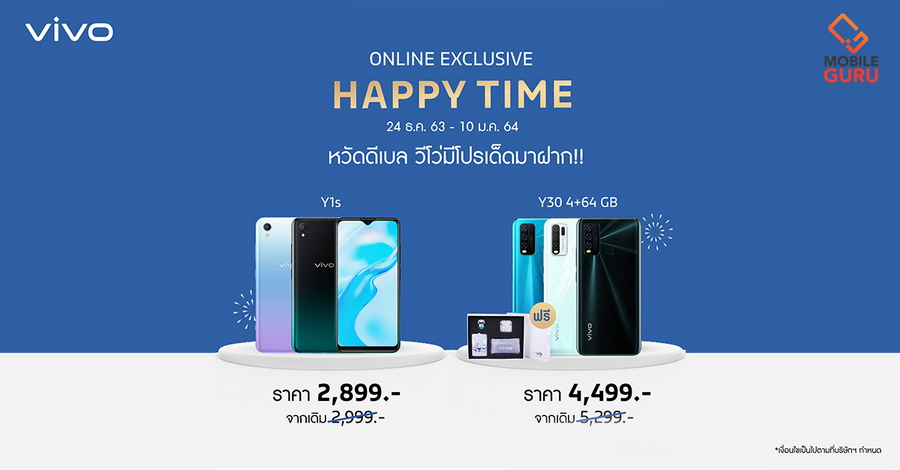 Vivo Y30 (4+64GB) เหลือเพียง 4,490 บาทเท่านั้น และรุ่นเล็กสเปคแรงที่ขายดีเป็นเทน้ำเทท่า อย่างรุ่น