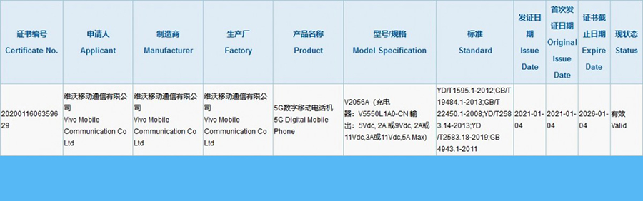 สำหรับ Vivo X60 Pro+ ในรหัสโมเดล V2056A ที่ผ่านการรับรองจาก CCC (3C) หรือ China Compulsory Certificate เรียบร้อยแล้ว โดยยืนยันว่า X60 Pro+ จะมากับชาร์จไว 55W พร้อมรองรับการเชื่อมต่อ 5G ซึ่งถือได้ว่าเป็นข้อมูลที่ไม่น่าแปลกใจนัก เพราะทั้งในรุ่น X60 และ X60 Pro ต่างก็รองรับ 5G ได้