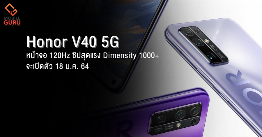 Honor V40 สมาร์ทโฟน 5G หน้าจอ 120Hz และมาพร้อมชิปสุดแรง Dimensity 1000+ จะเปิดตัว 18 ม.ค. 64