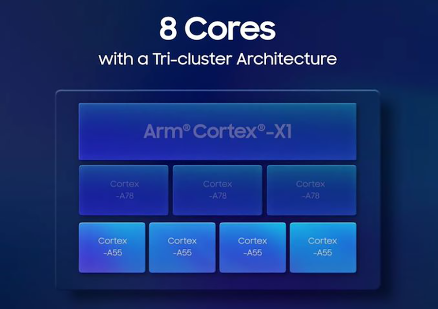 Exynos 2100 เป็นชิปประมวลผลที่ทางซัมซุงใช้สถาปัตยกรรม ARM Cortex X1 Core ความเร็วสัญญาณนาฬิกา 2.9GHz เป็นตัวหลัก ทำงานร่วมกับคอร์ประมวลผล Cortex A78 และ A55 สำหรับทำงานระดับต่ำ-กลางอีกชุด ซึ่งทางซัมซุงเคลมว่าเมื่อทำงานภาพรวมแล้วจะมีความเร็วที่เร็วกว่า Exynos 990 ที่ใช้อยู่บน Galaxy Note 20 Ultra 5G อยู่ราวๆ 30% เลยทีเดียว