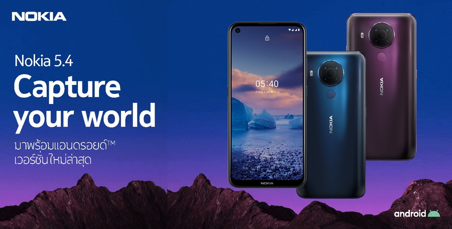 Nokia 5.4 มีให้เลือก 2 สีได้แก่ สีน้ำเงิน Polar Night และสีม่วง Dusk ราคาเปิดตัวในประเทศไทย 5,990 บาท