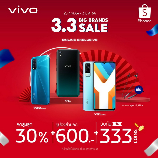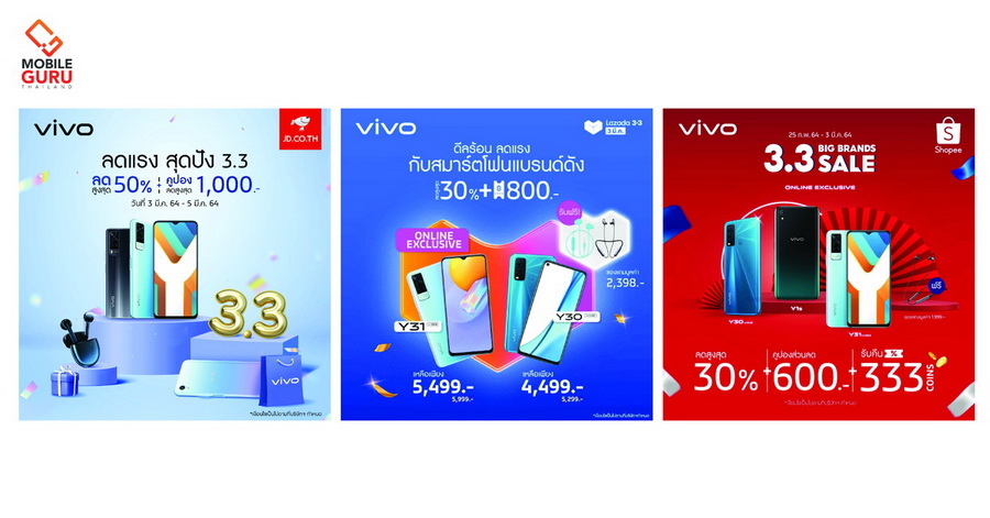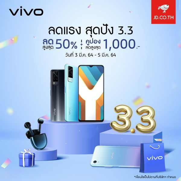 Vivo จัดโปรโมชั่นสุดเร้าใจต้อนรับ 3.3 ทุกช่องทาง Lazada, Shopee, JD Central