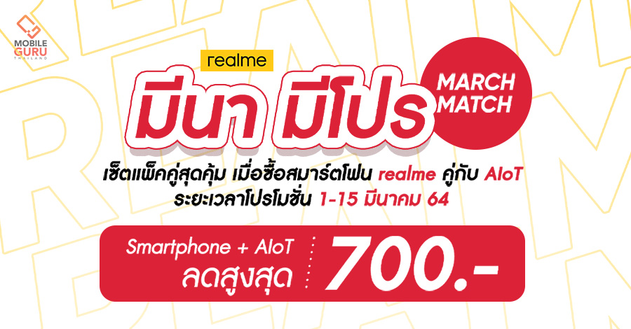 realme "มีนา มีโปร" โปรโมชันจัดเซ็ตแพ็คคู่ Smartphone + AIoT ลดสูงสุด 700 บาท วันนี้ - 15 มี.ค. 64