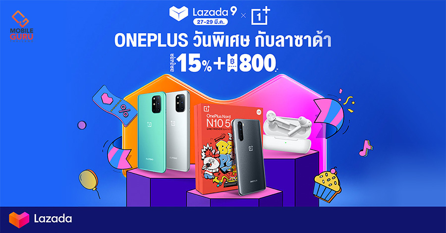 คุ้มหนัก OnePlus ลดสูงสุด 15% ทั้งสมาร์ทโฟนตัวท็อป หูฟังและอุปกรณ์เสริม พร้อมแจกคูปองลดเพิ่มอีก 800 บาท และพลาดไม่ได้! กับ Live แจกของรางวัลฟรี เตรียมช้อปเลย เฉพาะวันพิเศษ 27 - 29 มีนาคม 2564 นี้ ที่ Lazada เท่านั้น