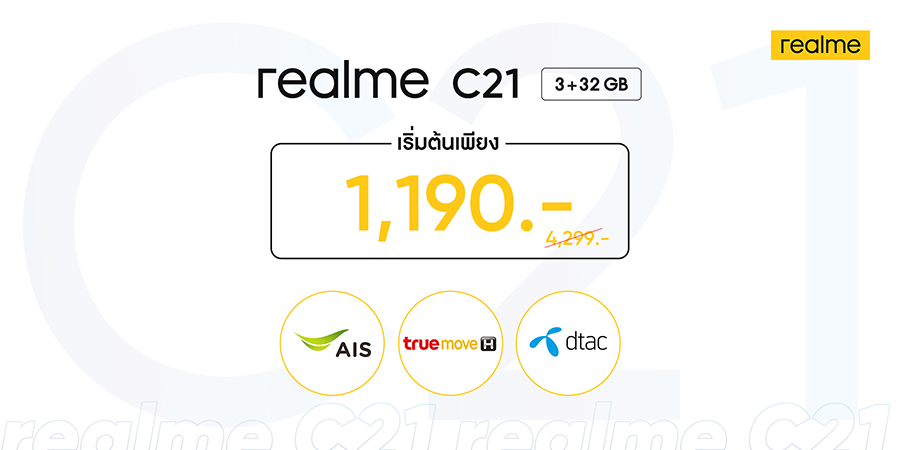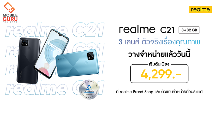 เป็นเจ้าของ realme C21 สมาร์ทโฟน 3 เลนส์ ตัวจริงเรื่องคุณภาพได้แล้ววันนี้ ที่ช็อปและตัวแทนจำหน่ายทั่วประเทศ
