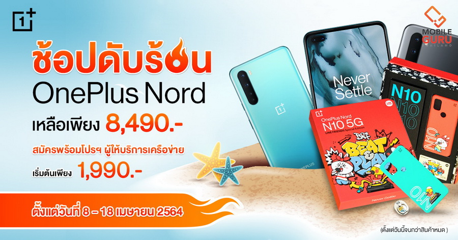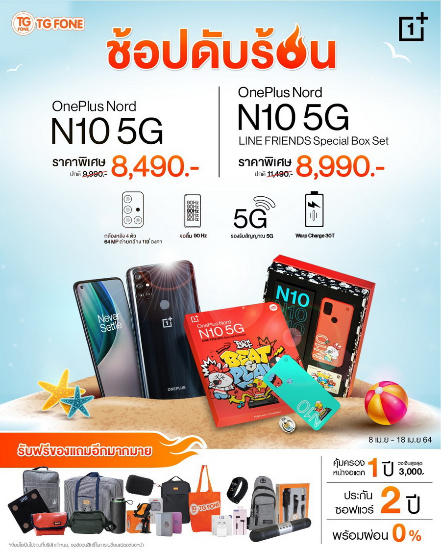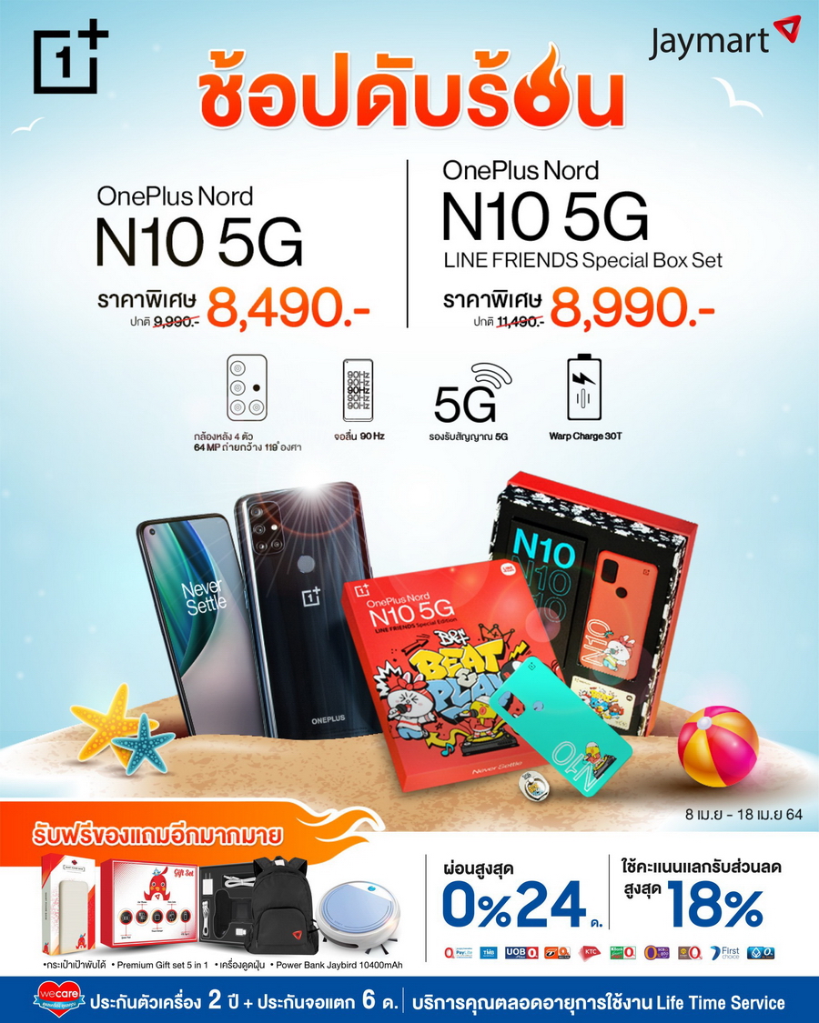 เมื่อซื้อ OnePlus Nord N10 5G หรือ LINE FRIENDS Special Box Set พร้อมแพ็กเกจผู้ให้บริการเครือข่าย เริ่มต้นเพียง 1,990 บาท ลดสูงสุด 7,000 บาท