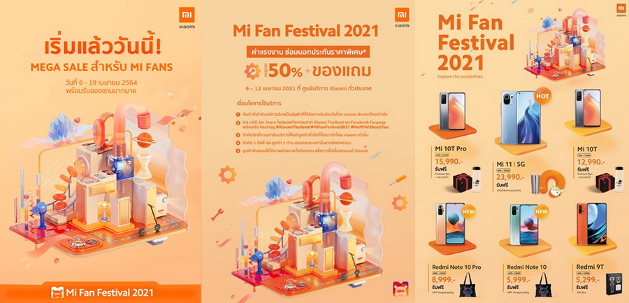 เพื่อฉลองเทศกาล Mi Fan Festival เสียวหมี่ยกทัพสมาร์โฟนจัดโปรโมชั่นพิเศษ ในระหว่างวันที่ 6 - 19 เมษายน 2564 เพียงซื้อสมาร์ทโฟนรุ่นใดก็ได้ใน 6 รุ่น ได้แก่ Mi 11, Mi 10T Pro, Mi 10T, Redmi Note 10 Pro, Redmi Note 10 และ Redmi 9T รับ Special Gift ฟรีทันที นอกจากนี้ผู้ใช้สมาร์ทโฟนเสียวหมี่ยังได้รับส่วนลด 50% สำหรับค่าแรงงานซ่อมนอกประกันในราคาพิเศษ ระหว่างวันที่ วันที่ 6 - 12 เมษายน 2564 ที่ศูนย์บริการเสียวหมี่ทั่วประเทศ