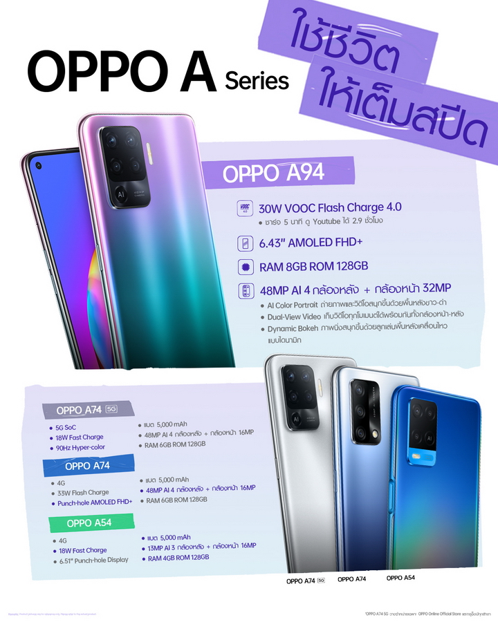 OPPO A94, OPPO A74 5G, OPPO A74 และ OPPO A54 สมาร์ทโฟนรุ่นใหม่ ครบทุกความต้องการ และครบทุกระดับราคา