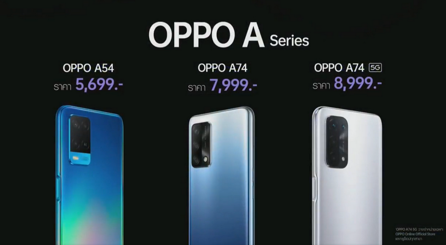 - OPPO A74 5G มีให้เลือก 2 สี ได้แก่ สีเงิน Space Silver และสีดำ Fluid Black ราคา 8,999 บาท (วางขายเฉพาะช่องทาง Online และกับ TrueMove H เท่านั้น)