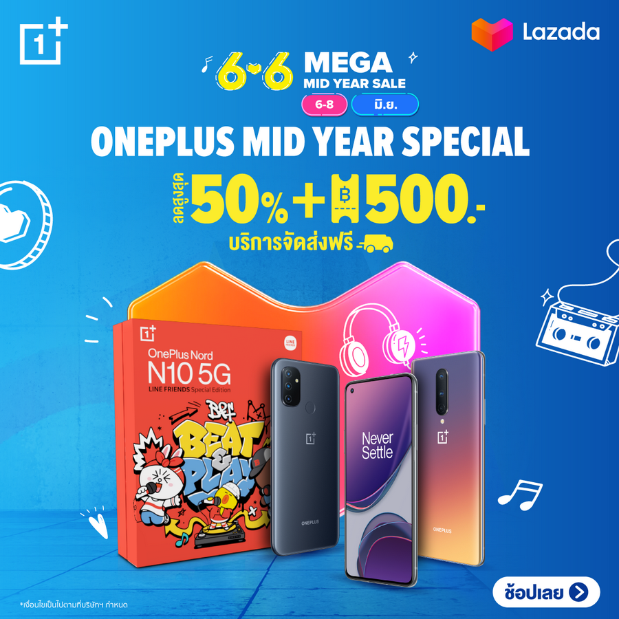 - ลดเลย 500.- เมื่อช้อปครบ 8,000.- (เฉพาะออเดอร์สมาร์ทโฟน ยกเว้น OnePlus N100)
