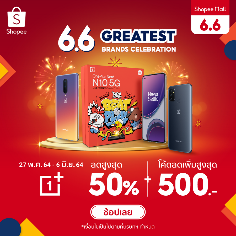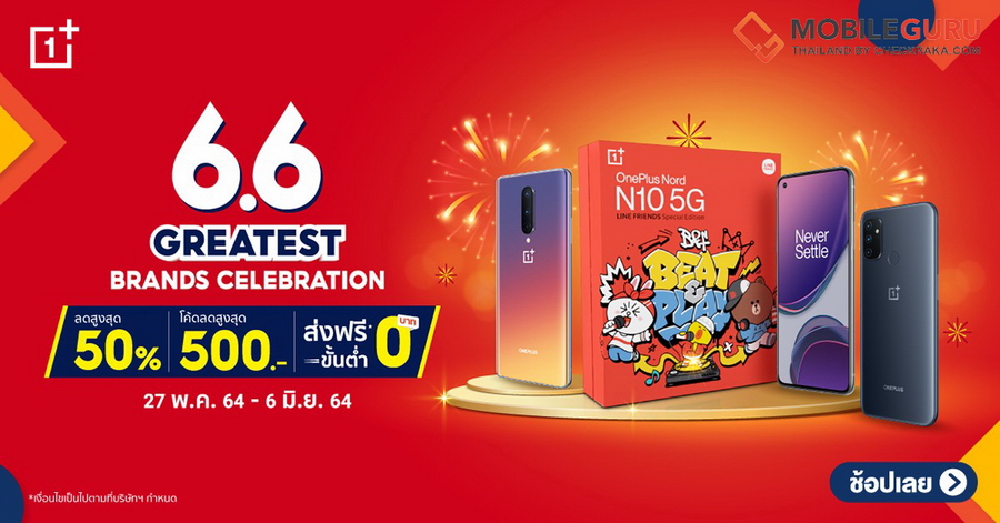 OnePlus 6.6 Greatest Celebration ลดสูงสุด 50% พร้อมคูปองลดเพิ่ม 500 บาท ส่งฟรีทุกไอเท็ม! ของรางวัลแจกเพียบ