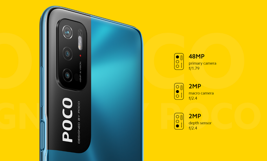 POCO M3 Pro 5G มีกล้องที่เต็มเปี่ยมด้วยคุณภาพประกอบด้วยกล้องหลัง 3 ตัว กล้องหลักความละเอียด 48MP กล้องมาโคร 2MP และกล้องวัดระยะชัดลึก 2MP พร้อมด้วยฟีเจอร์ต่างๆ อาทิ Night Mode, Slow Motion และ Time-lapse Video สามารถถ่ายภาพได้ในทุกสถานการณ์ ให้ผู้ใช้สร้างสรรค์ผลงานได้อย่างง่ายดาย