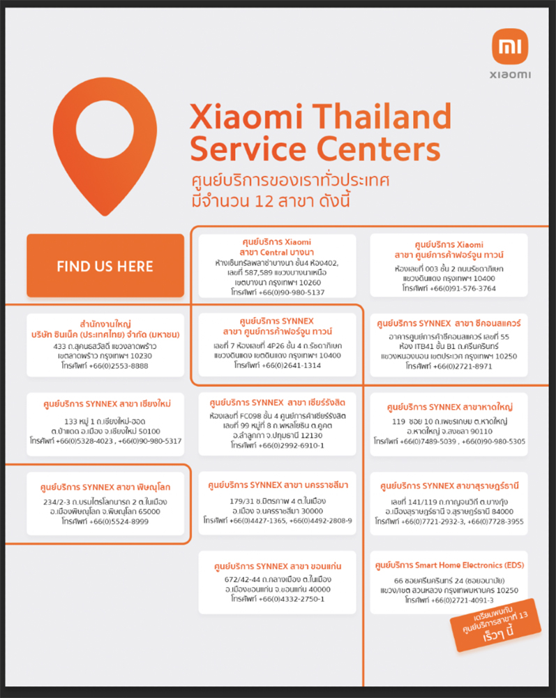 Xiaomi เปิดให้บริการ Xiaomi Call Center พร้อมเตรียมเปิดศูนย์บริการสาขาที่ 13 ในเดือนมิถุนายนนี้