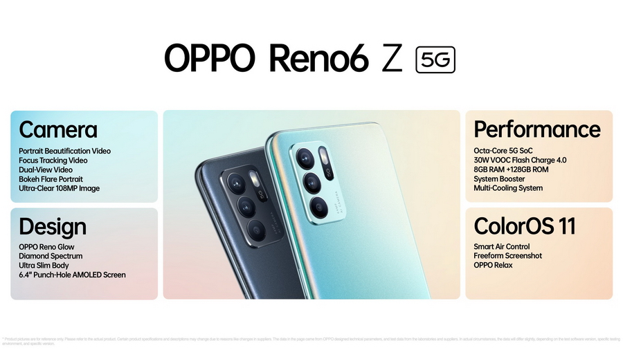 OPPO Reno6 Z 5G สมาร์ทโฟนรุ่นล่าสุดภายใต้แนวคิด "อารมณ์ไหน ก็พอร์ตเทรต" ให้บันทึกภาพถ่ายและวิดีโอพอร์ตเทรตในทุกความรู้สึก ทุกอารมณ์สู่สุดยอดประสบการณ์การใช้งานที่แตกต่างและโดดเด่น ด้วยนวัตกรรมสุดล้ำ อาทิ AI 3 กล้องหลัง ความละเอียด 64MP มาพร้อมฟีเจอร์ที่จะปลุกกระแสถ่ายภาพและวิดีโอพอร์ตเทรตในหมู่คนรุ่นใหม่โดยเฉพาะ ไม่ว่าจะเป็น Bokeh Flare Portrait และ Portrait Beautification Video