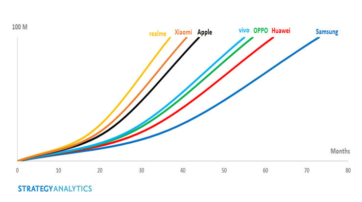 realme ขึ้นแท่นแบรนด์สมาร์ทโฟนที่มียอดขาย 100 ล้านเครื่องทั่วโลกได้เร็วที่สุด