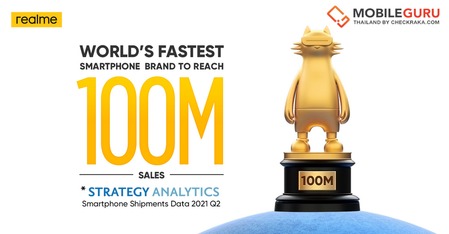 realme แบรนด์สมาร์ทโฟนเพื่อคนรุ่นใหม่ที่เติบโตเร็วที่สุดในโลก ประกาศความสำเร็จกับยอดขายสมาร์ทโฟน จำนวน 100 ล้านเครื่องทั่วโลก ทั้งนี้ realme มีแผนการดำเนินธุรกิจที่แข็งแกร่งตั้งแต่ในปี 2563 และ 2564 เนื่องจากต้องเผชิญกับความท้าทายทางเศรษฐกิจจากการแพร่ระบาดของ COVID-19 จนสามารถขึ้นแท่นแบรนด์สมาร์ทโฟนที่เติบโตเร็วที่สุดในโลกในระยะเวลา 3 ปี จากข้อมูลสถิติของ Strategy Analytics บริษัทที่ปรึกษาด้านการวิจัยตลาด