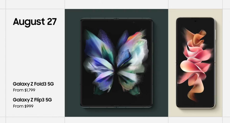 Samsung Galaxy Z Flip3 เน้นความเป็นแฟชั่นครับ มีการจับคู่กับสายนาฬิกาของ Galaxy Watch4 ด้วยนะ มีให้เลือกมากถึง 7 สีเลยครับ ได้แก่ Cream, Green, Lavender, Phantom Black, Gray, White และ Pink (สามสีหลังวางจำหน่ายเแพาะบนเว็บไซต์ Samsung) ราคาเริ่มต้น $999 หรือ 33,146 บาท (รุ่นนี้เคสน่ารักมากๆครับ มีให้เลือกจุใจแน่นอน)