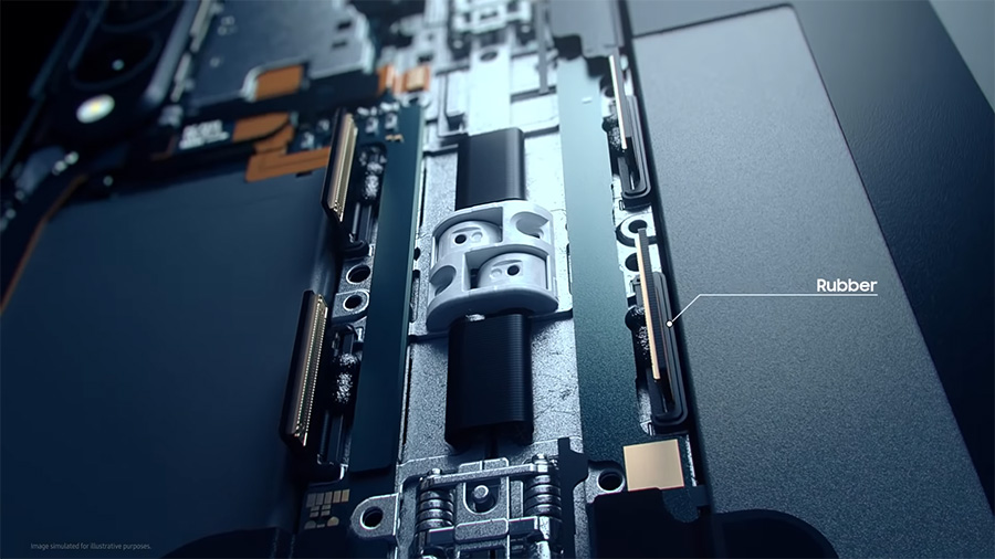 สำหรับวงการสมาร์ทโฟน หนึ่งในฟีเจอร์หลักที่ผู้คนคาดหวังคือ ความสามารถในการ 'ทนน้ำ' ซึ่งสำหรับสมาร์ทโฟนรูปทรงปกติ การป้องกันน้ำไม่ให้เข้าถึงอุปกรณ์ถือว่าทำได้ไม่ยากนัก แต่ Galaxy Z Fold3 5G นั้น ได้รับการพัฒนาขึ้นจากชิ้นส่วนหลักถึง 3 ส่วน ได้แก่ ตัวเครื่อง (Body) 2 ส่วน และบานพับ (Hinge) 1 ส่วน โดยมีการเดินสายไฟลอดผ่านบานพับเพื่อเชื่อมต่อการทำงานระหว่างตัวเครื่องทั้งสองส่วนเข้าด้วยกัน ซึ่งการปกป้องบานพับจากน้ำที่อาจเข้าไปในเครื่องขณะผู้ใช้พับหรือกางหน้าจอถือเป็นเรื่องท้าทายอย่างยิ่ง