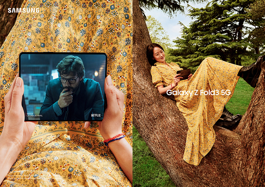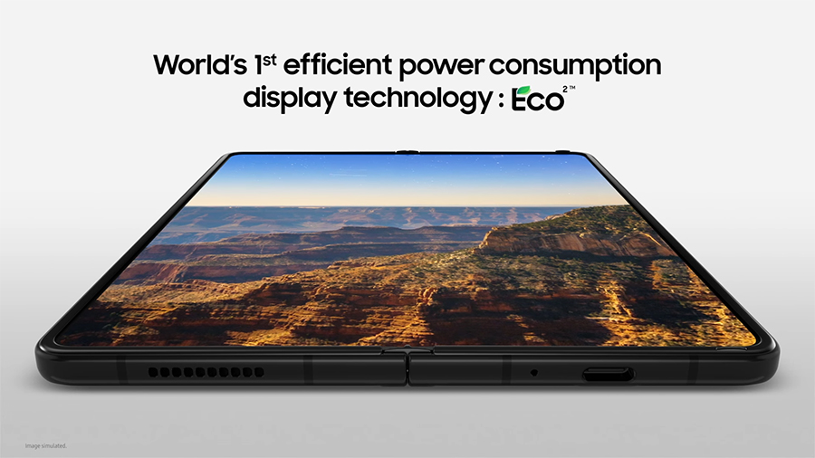จากการสำรวจผู้บริโภค เหตุผลหนึ่งที่พวกเขาเลือกซื้อและใช้งาน Galaxy Z Fold2 5G คือหน้าจอขนาดใหญ่ ดังนั้น ซัมซุงจึงมุ่งมั่นที่จะสร้างสุดยอดประสบการณ์การใช้งานบนหน้าจอให้กับทุกคน ซึ่งโดยปกติแล้ว คนส่วนใหญ่คงรู้สึกรำคาญใจกับรูกล้องที่ปรากฏบนหน้าจอขณะรับชมคอนเทนต์ต่างๆ ด้วยเหตุนี้ ซัมซุงจึงได้ประยุกต์ใช้อีกหนึ่งคุณสมบัติของแผง Eco2™ เพื่อเพิ่มการส่องผ่านแสงไปยังโมดูลกล้อง พร้อมด้วยการเปลี่ยน Pixel array ให้แสดงผลที่จำนวนขั้นต่ำเพื่อเพิ่มพื้นที่บนหน้าจอให้มากยิ่งขึ้น ส่งผลให้ Galaxy Z Fold3 5G ถือเป็นสมาร์ทโฟนหน้าจอพับได้รุ่นแรกของโลกที่ใช้นวัตกรรมนี้ โดยขณะที่ผู้ใช้กางหน้าจอเพื่อถ่ายภาพหรือวิดีโอคอล รูกล้องจะปรากฏขึ้นเพื่อให้เห็นกล้องได้อย่างเด่นชัด แต่เมื่อถึงเวลาเล่นเกมหรือชมคอนเทนต์ รูกล้องดังกล่าวจะหายไปเพื่อแสดงผลภาพที่เต็มตา