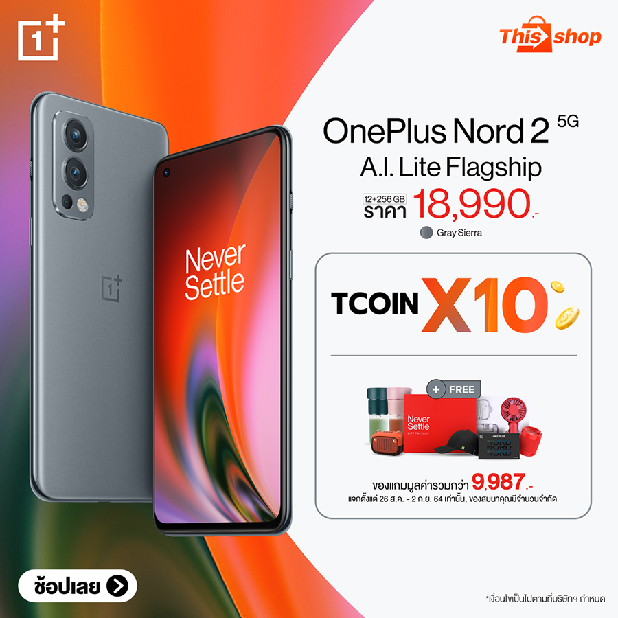 OnePlus Nord 2 5G วางจำหน่ายวันนี้ สุดยอดสมาร์ทโฟน "A.I. Lite Flagship" ฉลาดกว่าที่เคยด้วยเทคโนโลยี A.I. สุดล้ำ และทรงพลังในราคาที่คุ้มค่า ชูจุดเด่นด้วยชิปเซ็ต MediaTek Dimensity 1200-AI เน้นย้ำความสามารถของ A.I. ใหม่ล่าสุดที่ OnePlus และ MediaTek ได้พัฒนาขึ้นเป็นพิเศษ อัพเกรดทั้งการเล่นเกม A.I. Enhanced Gameplay, การถ่ายภาพด้วย A.I. Camera ระบบกล้องหลักคมชัด 50 MP พร้อมระบบกันสั่น OIS และเซ็นเซอร์ Sony IMX766 และ A.I. Optimized Display การแสดงผลบนหน้าจอที่มาพร้อมคุณสมบัติใหม่ อย่าง A.I. Color Boost และ A.I. Resolution Boost ซึ่งช่วยปรับปรุงสีและยกระดับความละเอียดของภาพให้ชัดเจน มีสีสันสดใสสมจริงยิ่งขึ้น, หน้าจอ Fluid AMOLED ความละเอียด Full HD+ ลื่นไหล 90 Hz, แบตเตอรี่ที่อึดถึง 4,500 mAh และ Warp Charge 65 รองรับ 5G พร้อมกับระบบปฏิบัติการ OxygenOS 11.3 ที่เร็วและตอบสนองไวที่สุดของ OnePlus เพื่อมอบประสบการณ์การใช้งานที่ดีกว่าสำหรับผู้ใช้งาน