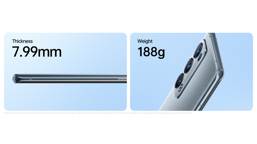 นอกจากประสิทธิภาพการถ่ายพอร์ตเทรตและความเร็วแรงที่เหนือกว่าแล้ว ในด้านดีไซน์ของ OPPO Reno6 Pro 5G ก็ดีไม่แพ้กัน โดย OPPO Reno6 Pro 5G มาพร้อมดีไซน์บางเบา จับถนัดมือ มาในสีที่สวยงามไม่เหมือนใครด้วยสี Lunar Grey ที่ออกแบบด้วยเทคนิคอันเป็นเอกลักษณ์อย่าง OPPO Reno Glow ให้ผิวพื้นผิวสีเงินเมทัลลิกที่ระยิบระยับสะกดทุกสายตา